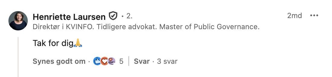 Dertil kommer alle de brugere der har delt og kommenteret mediernes opslag på SoMe, eller de veninder, som siger, de er enige med mig, men som ikke tør sige det højt. En af mine veninder turde ikke engang like nogle af de kritiske, men sobre, kommentarer på Bremers LinkedIn-opslag, af frygt for professionelle repressalier, hvis nu hendes kollegaer eller netværk så det.